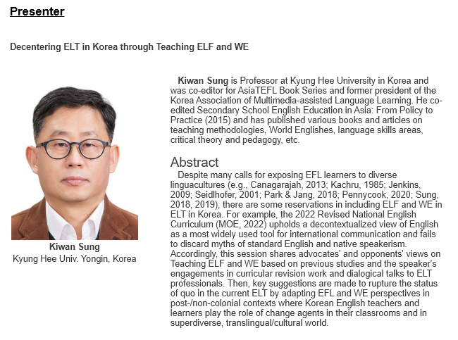 Conference website: http://www.asiatefl2023.org Conference Welcome Conference Welcome