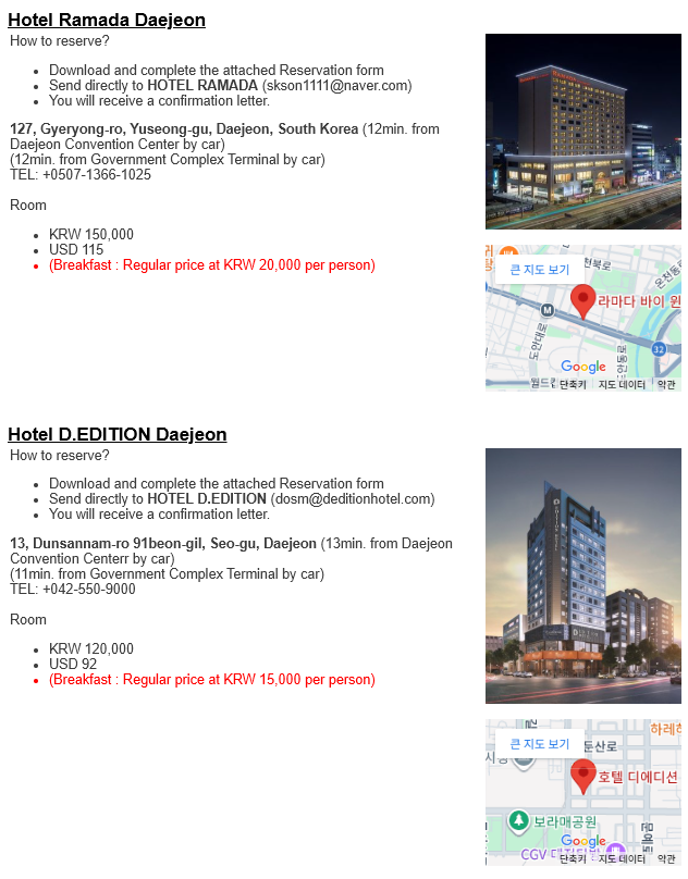 If arriving at Incheon Airport during daytime hours, you may find the Daejeon Convention Center Concierge Desk at Incheon International Airport convenient.